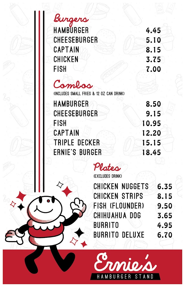 Welcome to Ernie's Hamburger Stand, a hidden gem located at 3001 E 30th St in Brownsville, TX. This nostalgic eatery boasts a delightful menu centered on classic American fare. Each burger is crafted with care, featuring options like the Hamburger ($4.45) and the indulgent Captain Burger ($8.15) topped with two patties and cheese, ensuring it's a flavor-packed experience. Diners rave about the crispy, flavorful burgers that evoke memories of the old-school dining experience.